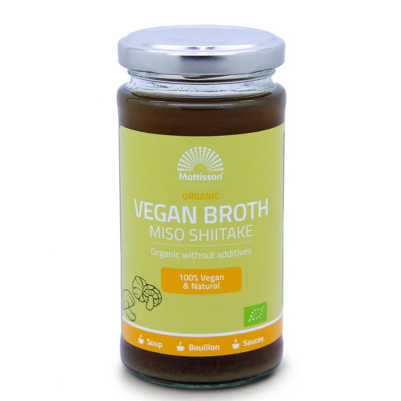 Зеленчуковият бульон с Мисо и гъби Шийтаке на Mattisson Healthstyle е органичен продукт за получаване на здравословна напитка за пиене или да послужи като хранителна основа за супи и сосове.