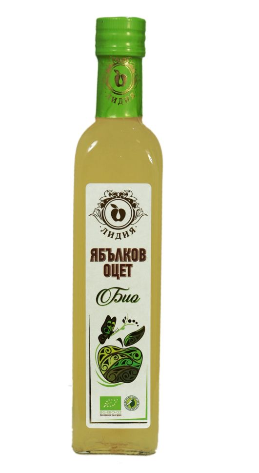 Био ябълков оцет.Не съдържа консерванти, оцветители и добавки. Поява на утайка е естествен процес на самоизбистряне.