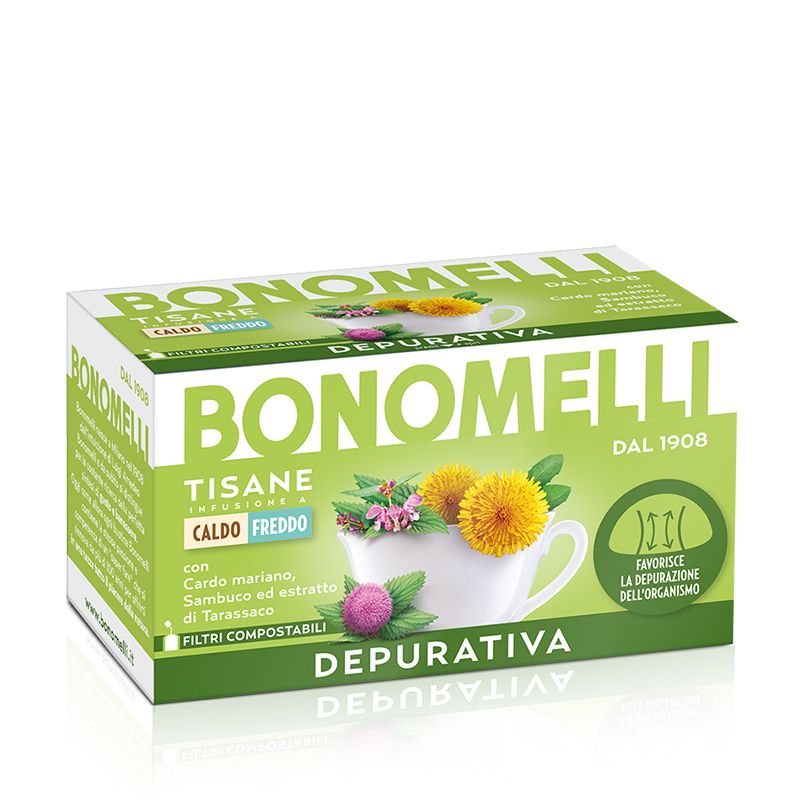 Tisane Depurativa на италианската компания Bonomelli е висококачествена билкова смес, която съдържа в състава си екстракт от лимонена трева, зелен чай, бял трън, куркума, листа от бреза, мечо грозде и глухарче. Оказва противовъзпалително и пречистващо действие и насърчава естествената детоксикация на организма. Оказва благоприятен ефект на отделителната система, спомага за изхвърлянето на токсините и излишните течности от тялото и подпомага метаболитното здраве.