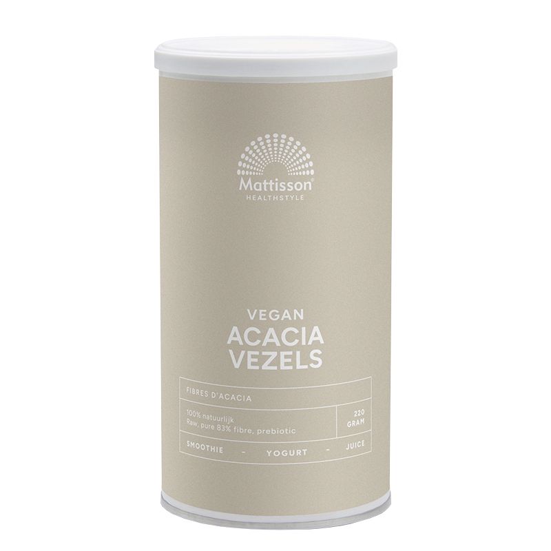 Акациеви фибри на прах от линията Mattisson Healthstyle са естествен източник на разтворими диетични влакнини, които осигуряват отлична пребиотична подкрепа за храносмилането и общото здраве. Извлечени от смолата на дървото Acacia senegal, произхождащо от Африка и обработени чрез щадящ процес на събиране, изсушаване и фино смилане. Те са с високо съдържание на разтворими фибри (минимум 83%), които действат като мощен пребиотик.